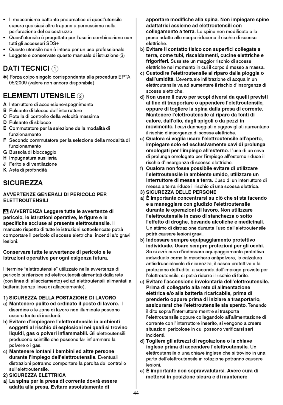 inglese prima di accendere l'elettroutensile. Un