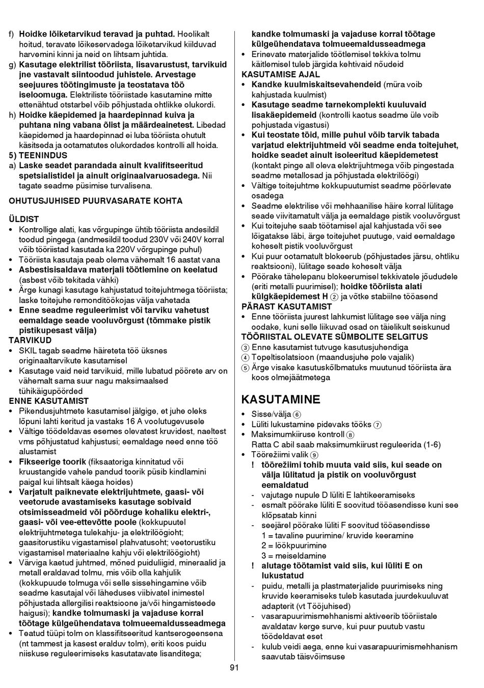 g) Kasutage elektrilist tööriista, lisavarustust, tarvikuid