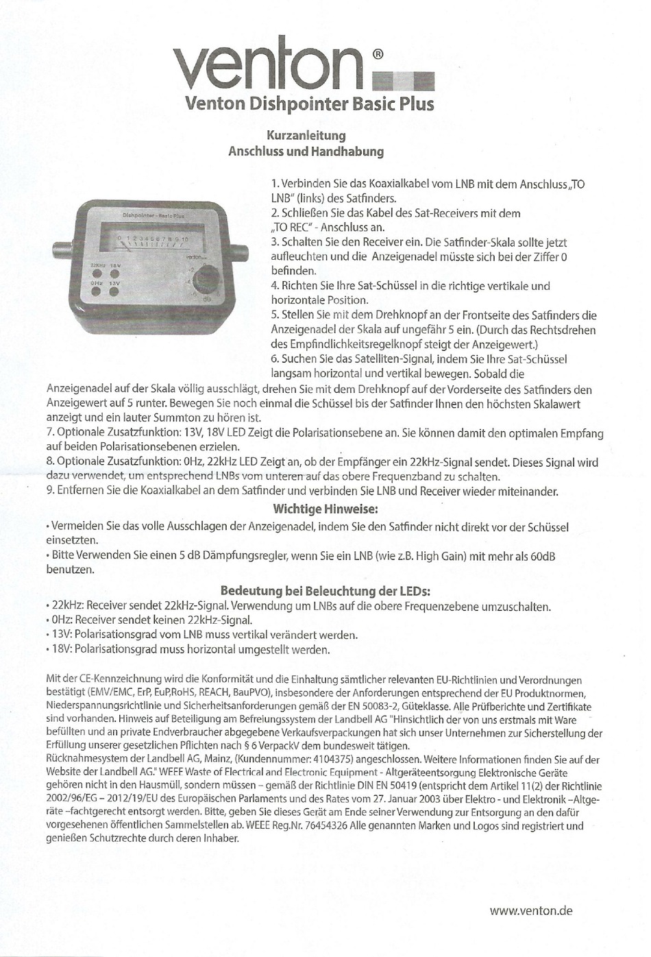 Anzeigewert auf 5 runter. Bewegen Sie noch einmal die Schüssel bis der Satfinder Ihnen den höchsten Skalawert
