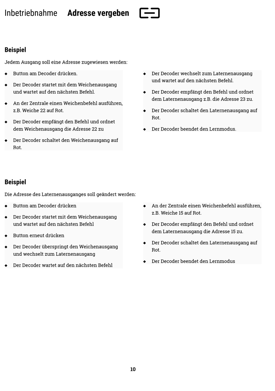 Der Decoder startet mit dem Weichenausgang