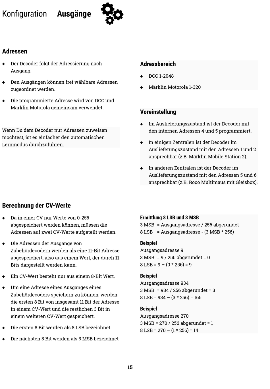 Zubehördecodern werden als eine 11-Bit Adresse