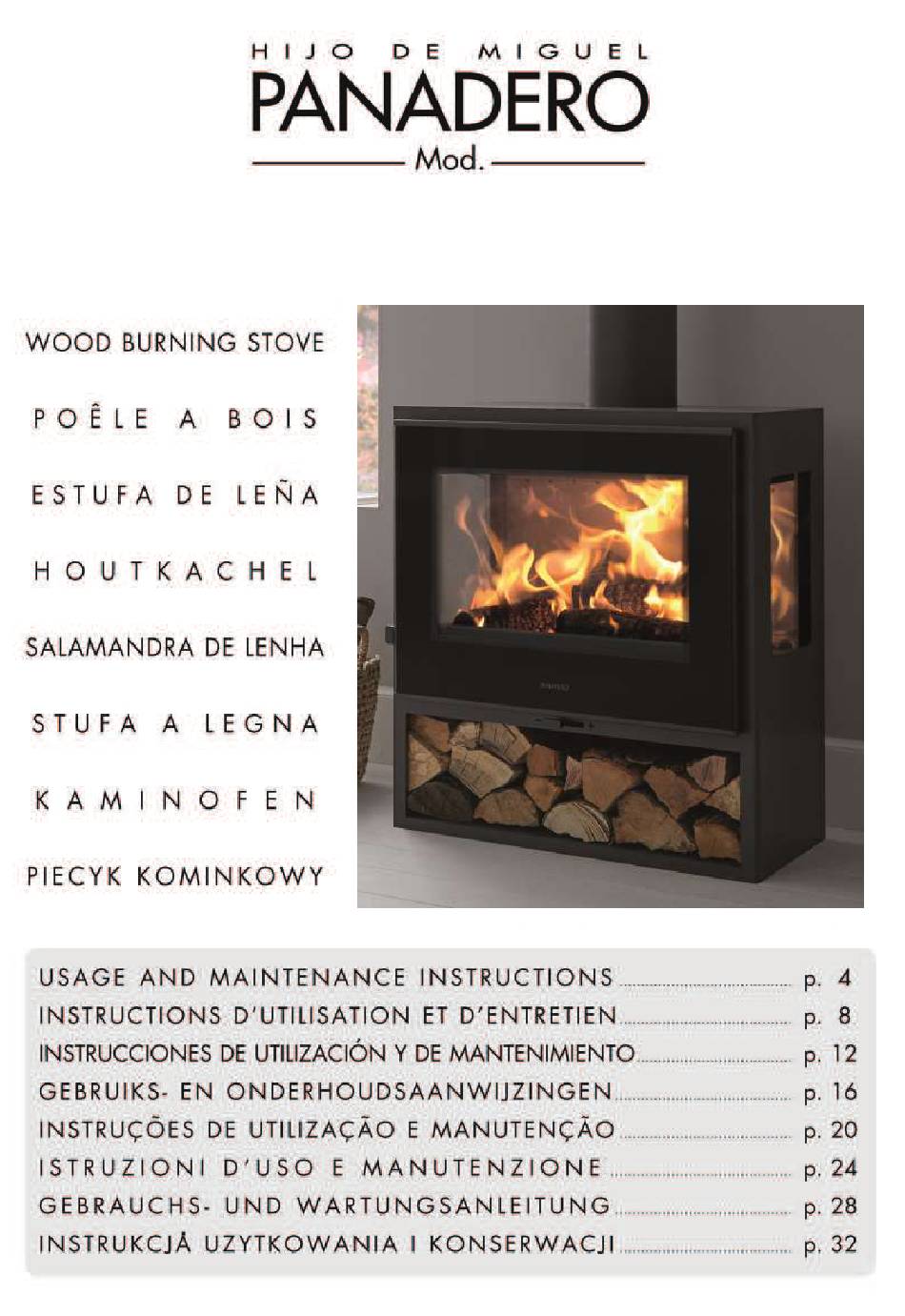 USAGE AND MAINTENANCE INSTRUCTIONS You have purchased a PANADERO product. Apart from correct maintenance, our woodstoves require installation strictly in accordance with legislation. Our products conform to the EN 13240:2001 and A2:2004 European norm, however it is very important for you the consumer to know how to correctly use your woodstove following the recommendations we set out.