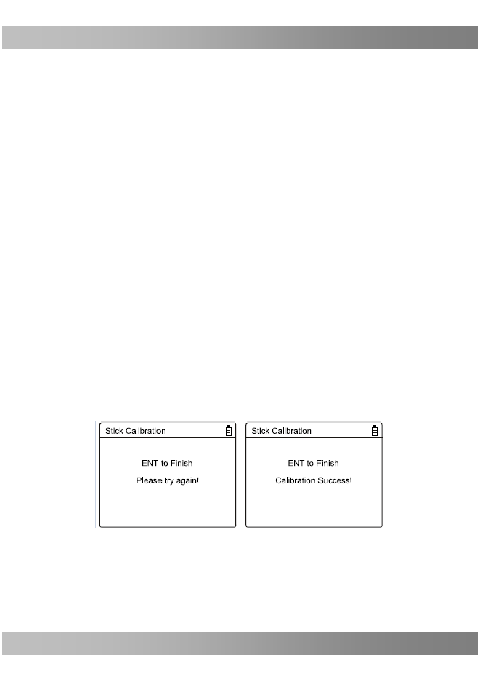 point de menu "Calibration Manches" ("Stick Calibration"), puis appuyez sur [ENT] pour