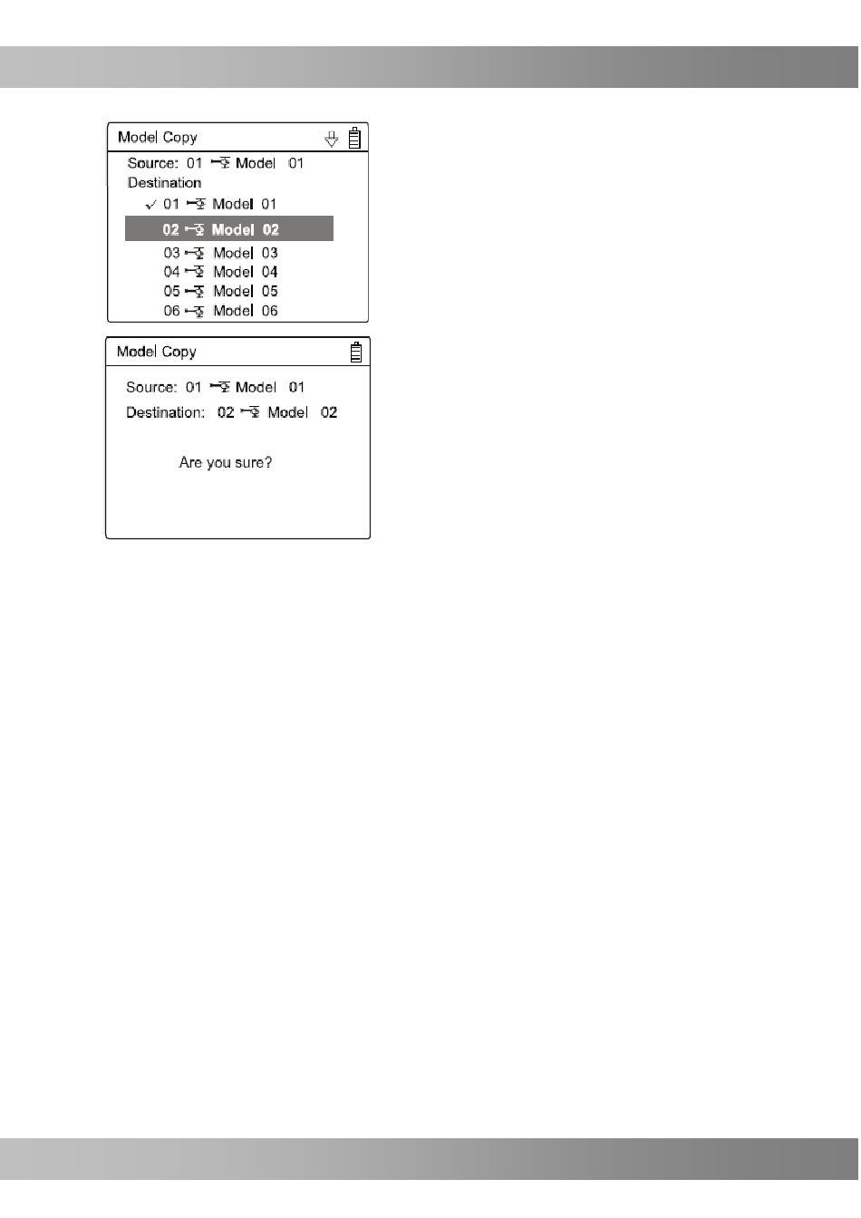 Entre deux télécommandes DEVO F12E, les modèles peuvent être échangés sans fil.