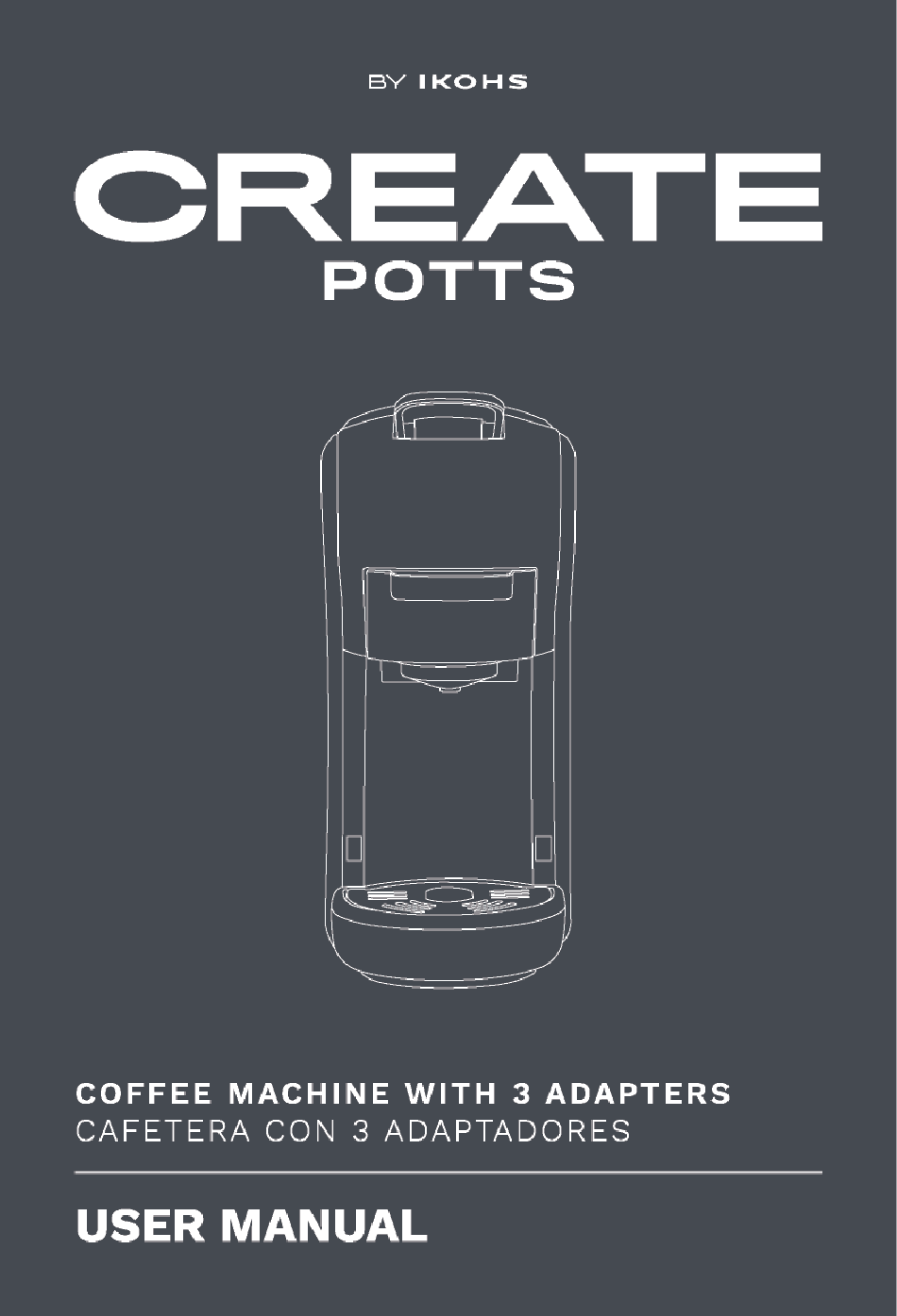 IKOHS CREATE POTTS COFFEE MACHINE WITH 3 ADAPTERS CAFETERA 3 ADAPTADORES USER MANUAL...