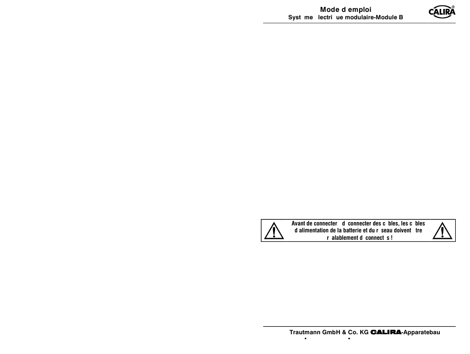 Avant la mise en service du Module B, celui-ci doit être monté sur et raccordé
