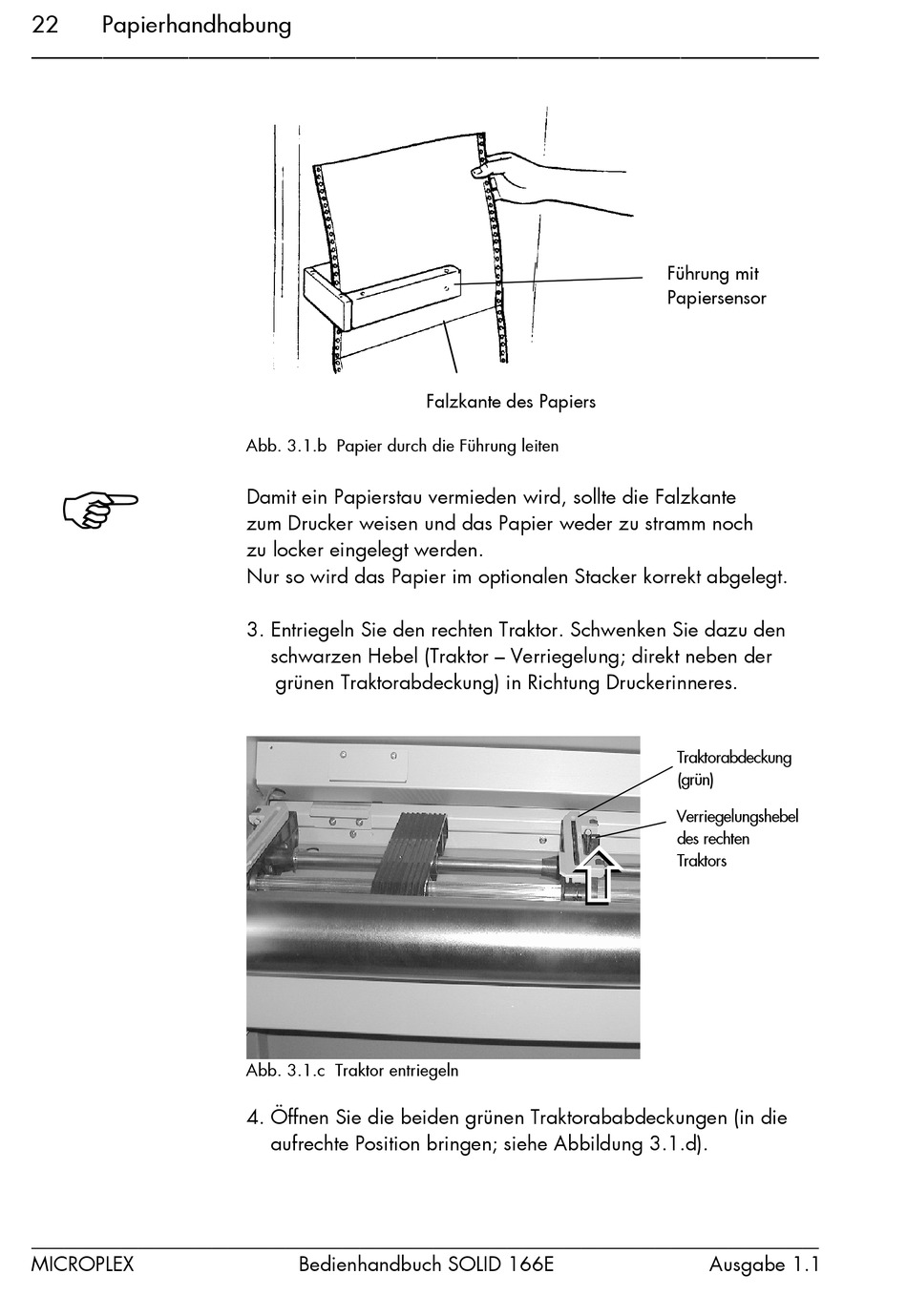 grünen Traktorabdeckung) in Richtung Druckerinneres.