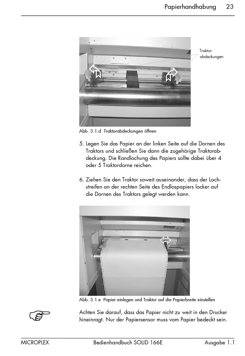 Abb. 3.1.e Papier einlegen und Traktor auf die Papierbreite einstellen