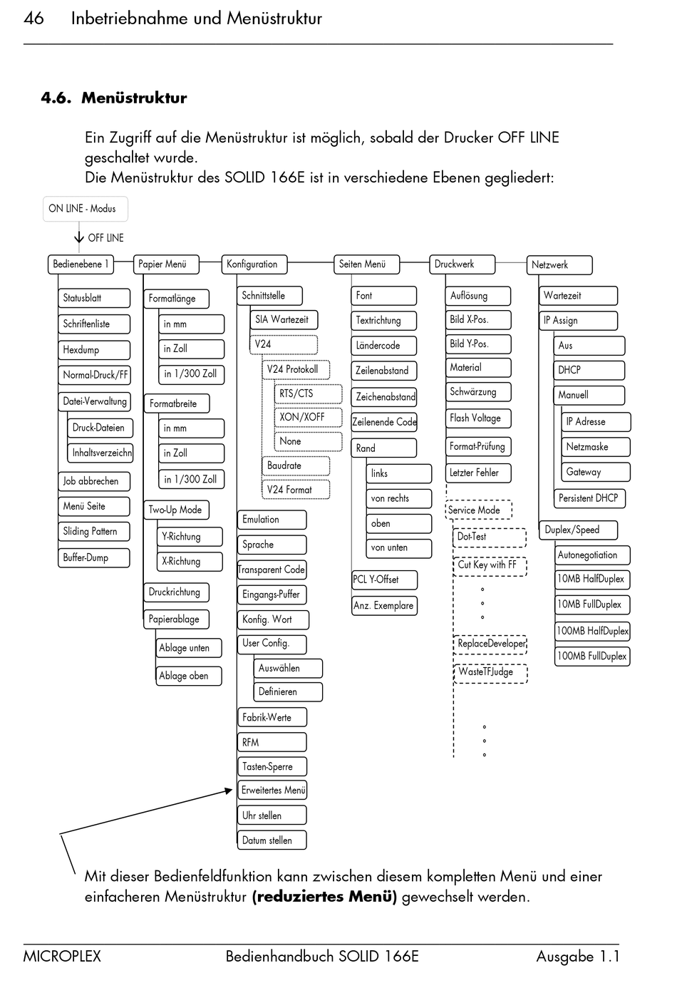 Die Menüstruktur des SOLID 166E ist in verschiedene Ebenen gegliedert: