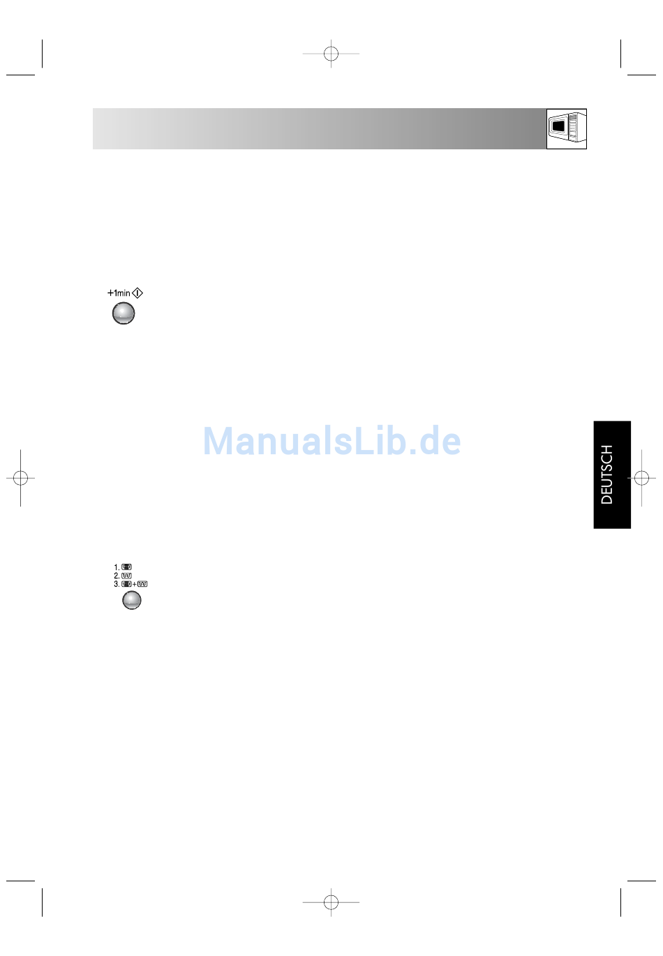Durch Drücken der +1min/START-Taste können Sie den Garvorgang bei 100 P Mikrowellenleistung