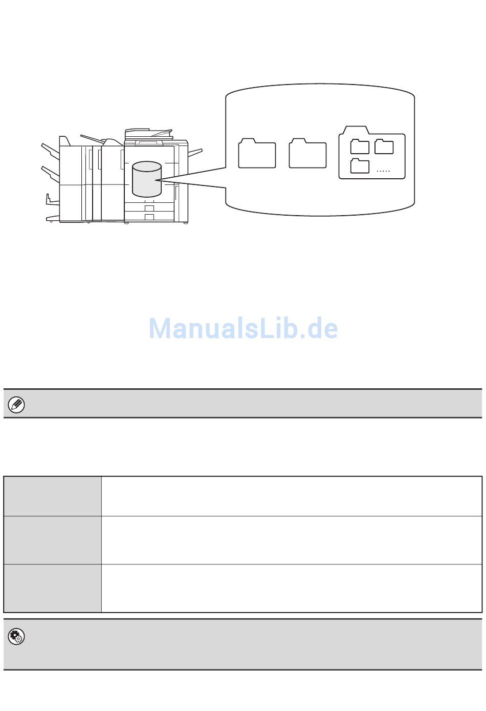Es gibt drei Arten von Ordnern, die für das Speichern von Dateien mit Hilfe der Dokumentenablage verwendet werden.