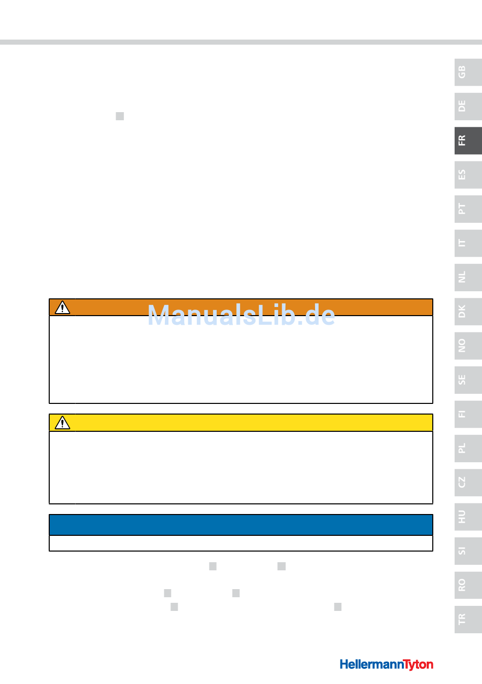 f Utilisez exclusivement des colliers de serrage HellermannTyton en plastique.