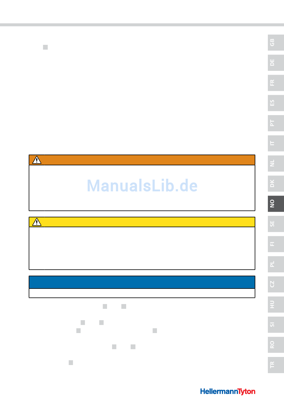 f Bruk utelukkende HellermannTyton kabelstrips av plast.