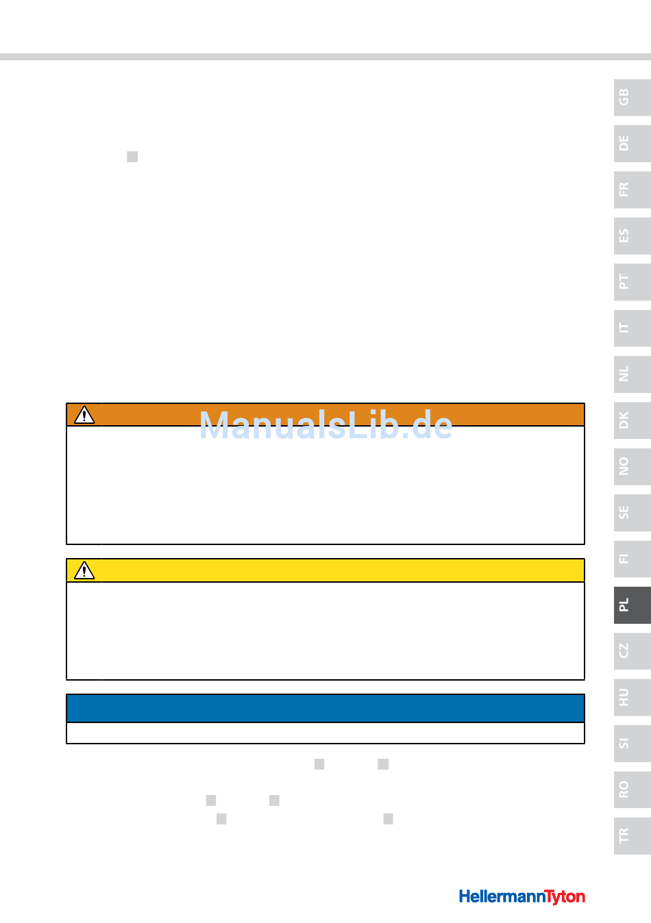 f Stosować wyłącznie opaski kablowe HellermannTyton z tworzywa sztucznego.