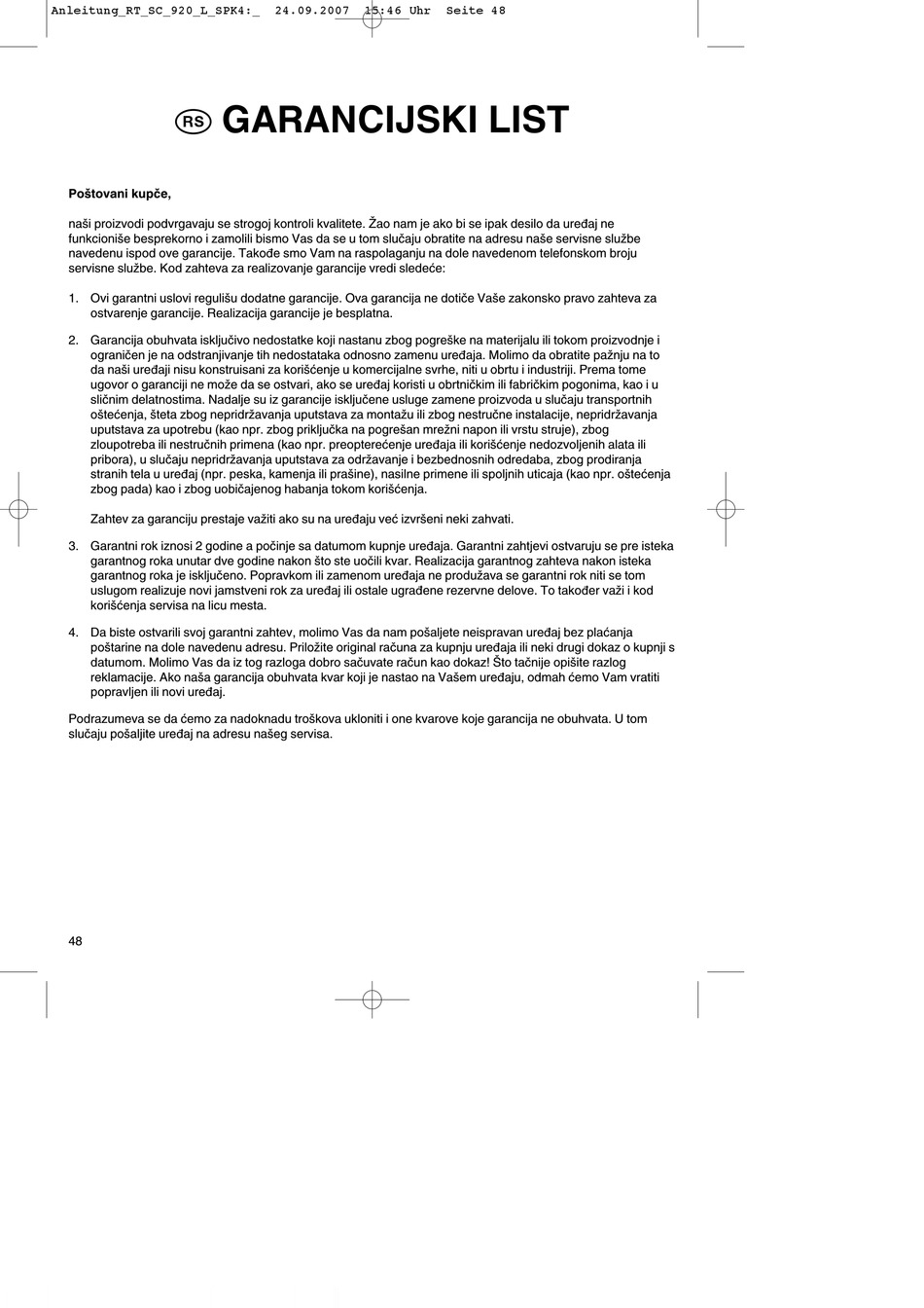 ograničen je na odstranjivanje tih nedostataka odnosno zamenu uređaja. Molimo da obratite pažnju na to