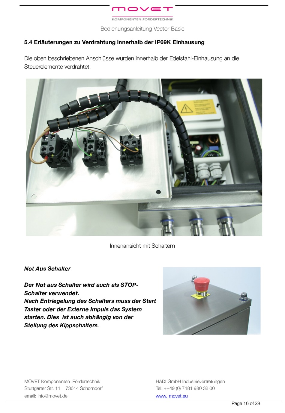 5.4 Erläuterungen zu Verdrahtung innerhalb der IP69K Einhausung