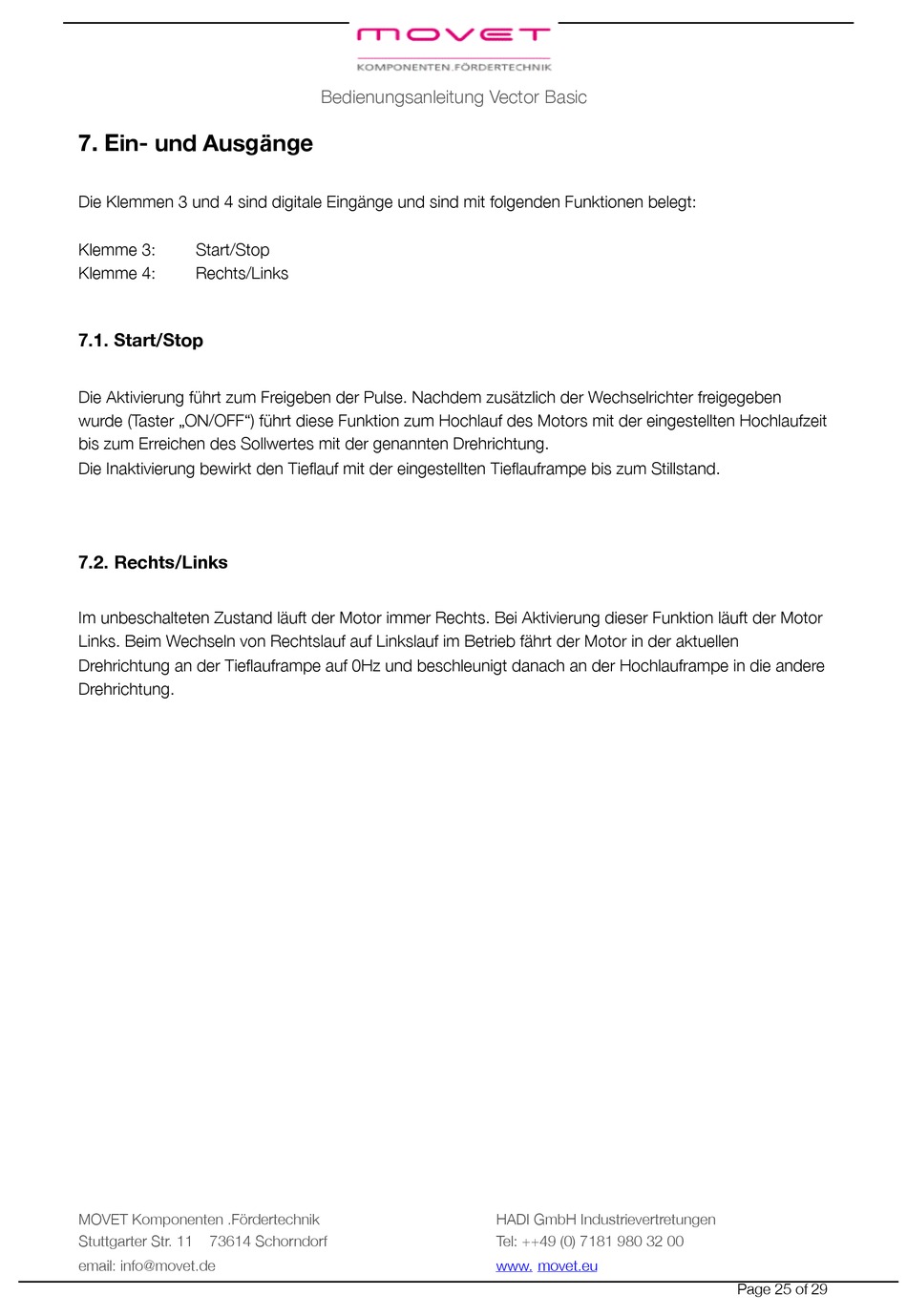 Die Inaktivierung bewirkt den Tieflauf mit der eingestellten Tieflauframpe bis zum Stillstand.