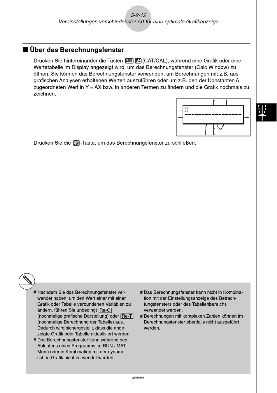 Wertetabelle im Display angezeigt wird, um das Berechnungsfenster (Calc Window) zu