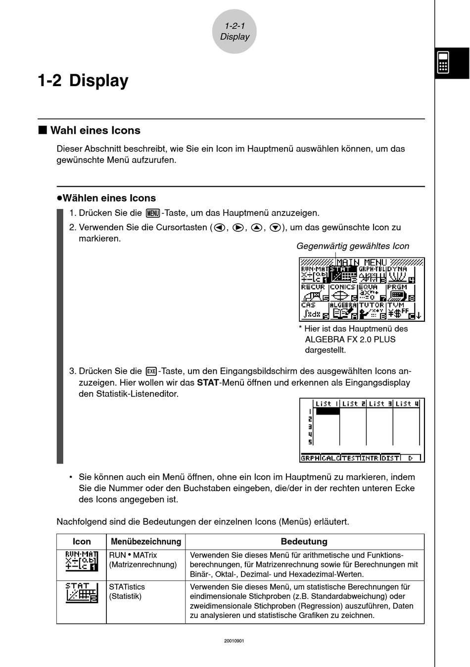 Dieser Abschnitt beschreibt, wie Sie ein Icon im Hauptmenü auswählen können, um das