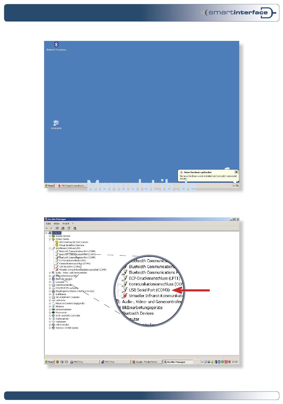 Nach Erfolgter Installation Erscheint Wieder Eine Meldung; Die Erfolgreiche Installation Können Sie Im Hardwaremanager Kontrollieren; Achten Sie Auf Die Nummer Des Neu Entstandenen Com-Ports - Smartinterface Usb Bedienungsanleitung