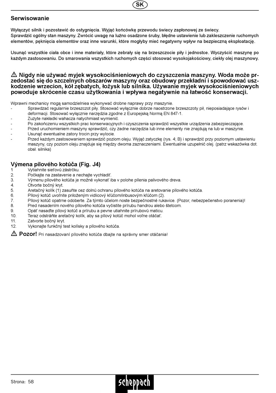 Výmenu pílového kotúča je možné vykonať iba v polohe pílenia palivového dreva.