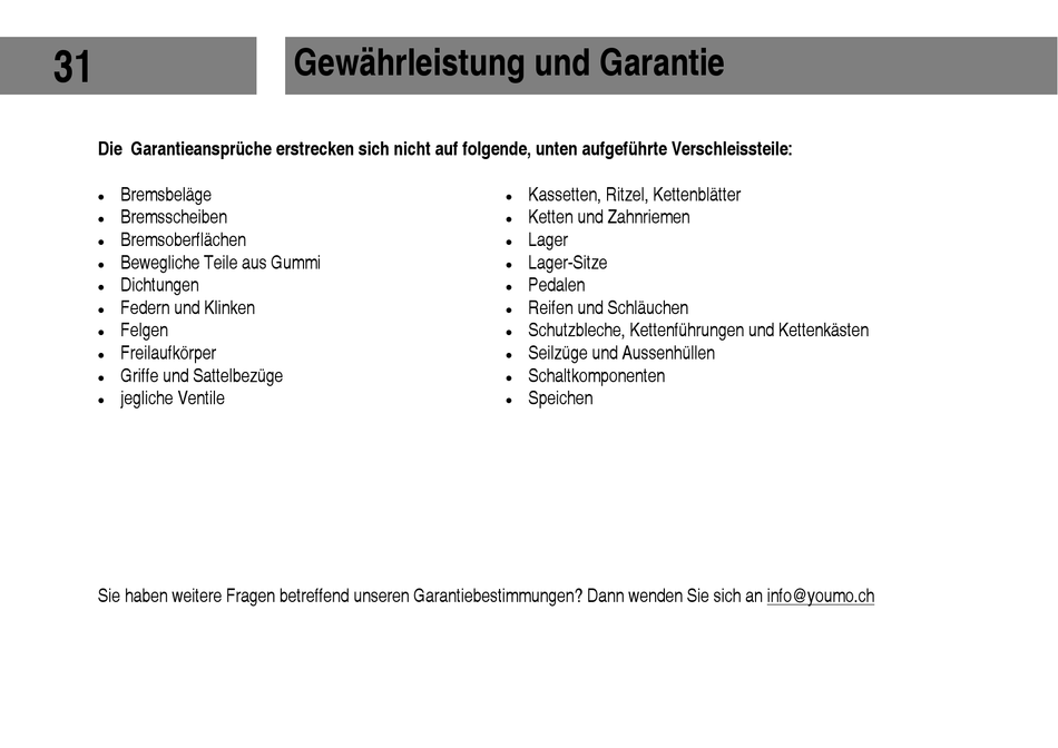 Sie haben weitere Fragen betreffend unseren Garantiebestimmungen? Dann wenden Sie sich an info@youmo.ch