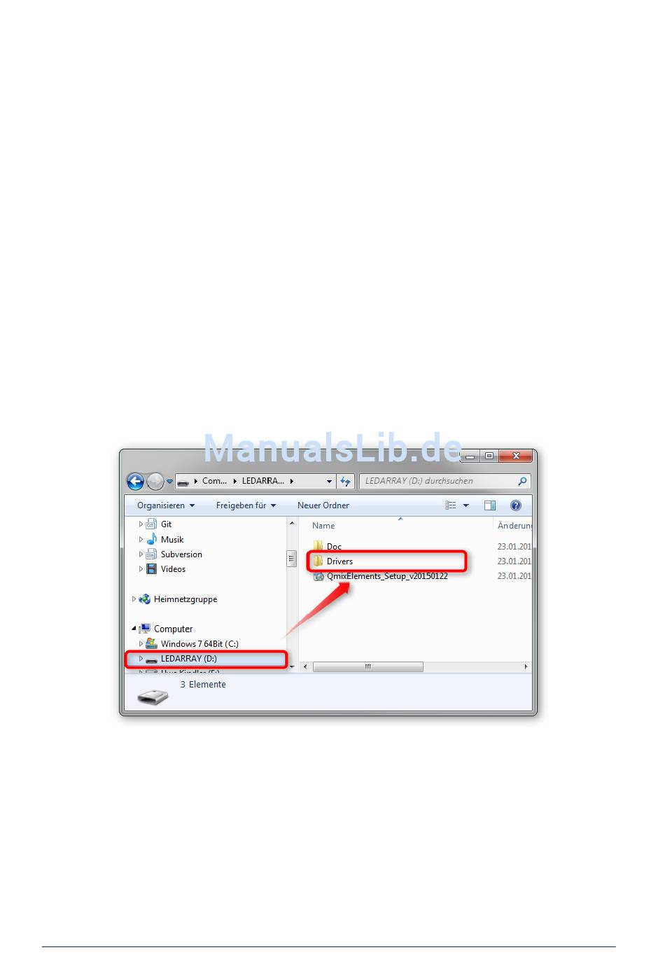 Öffnen Sie auf diesem Datenträger den Order Drivers/LED-Array und starten Sie die Datei