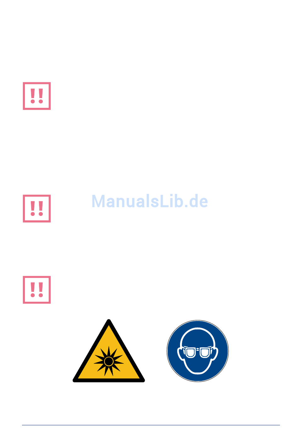 VORSICHT. Beachten Sie die Warnhinweise (z.B. Leistungsdichte und spektrale Breite