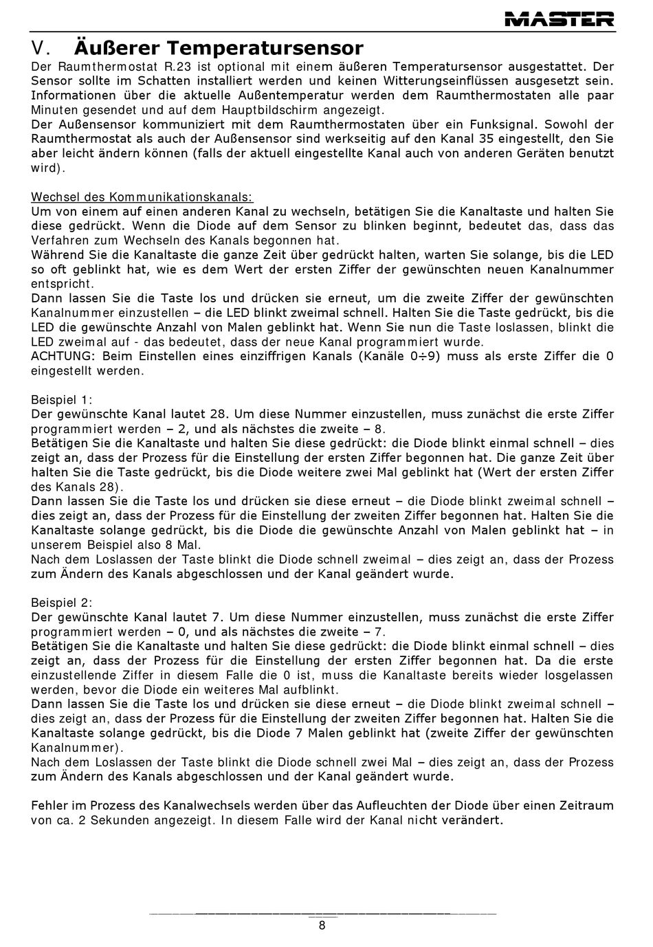 Raumthermostat als auch der Außensensor sind werkseitig auf den Kanal 35 eingestellt, den Sie