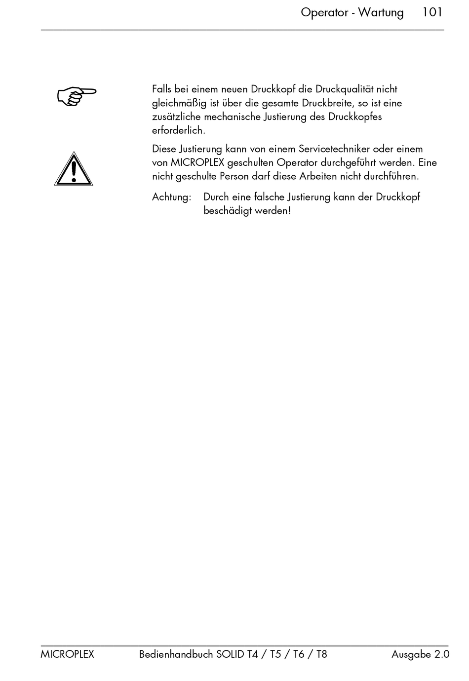 zusätzliche mechanische Justierung des Druckkopfes