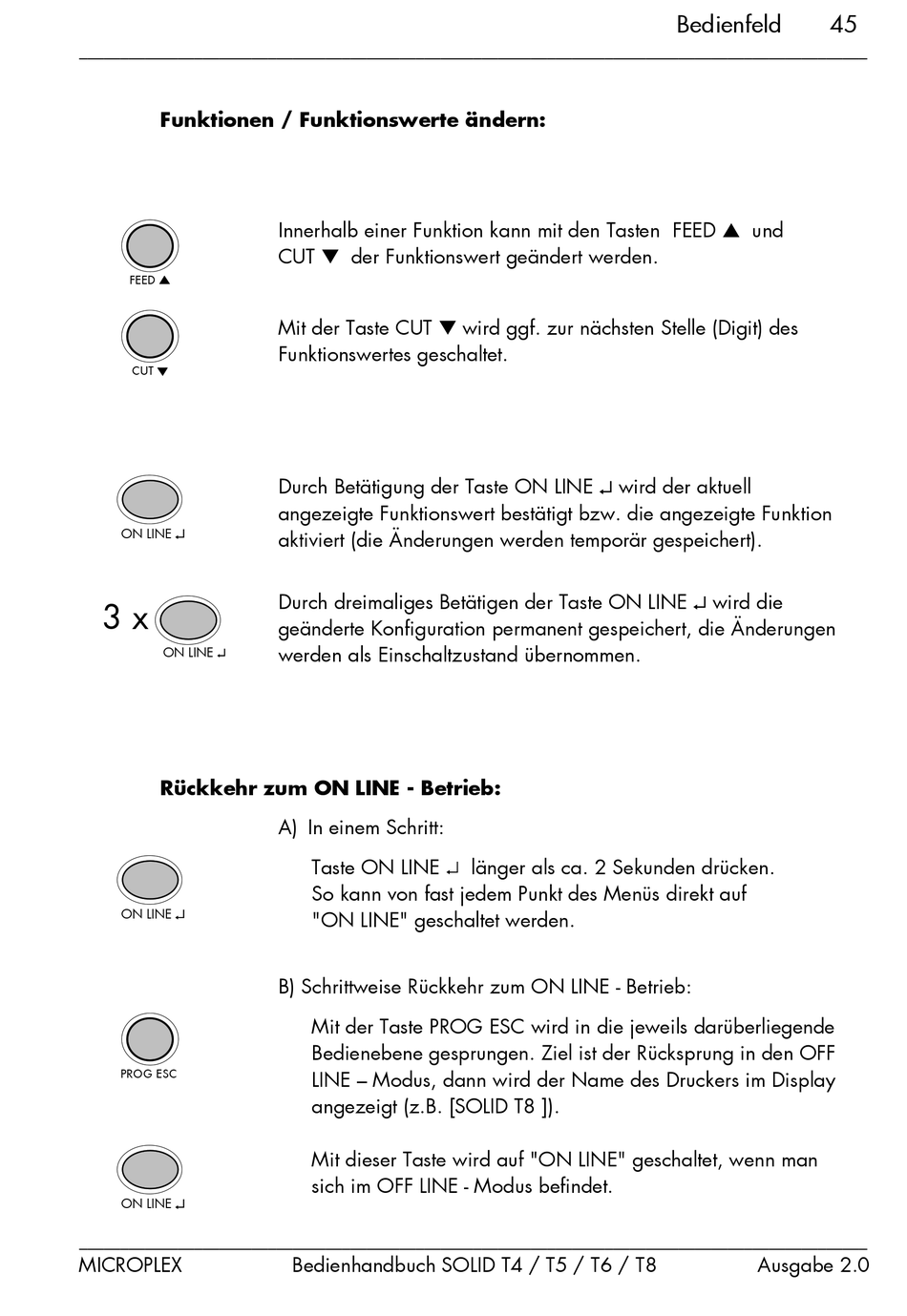 Durch dreimaliges Betätigen der Taste ON LINE ↵ wird die