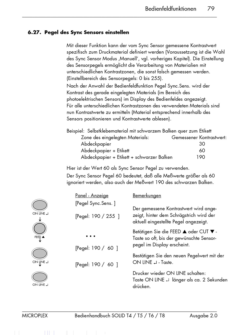 Sensors positionieren und Kontrastwerte ablesen).