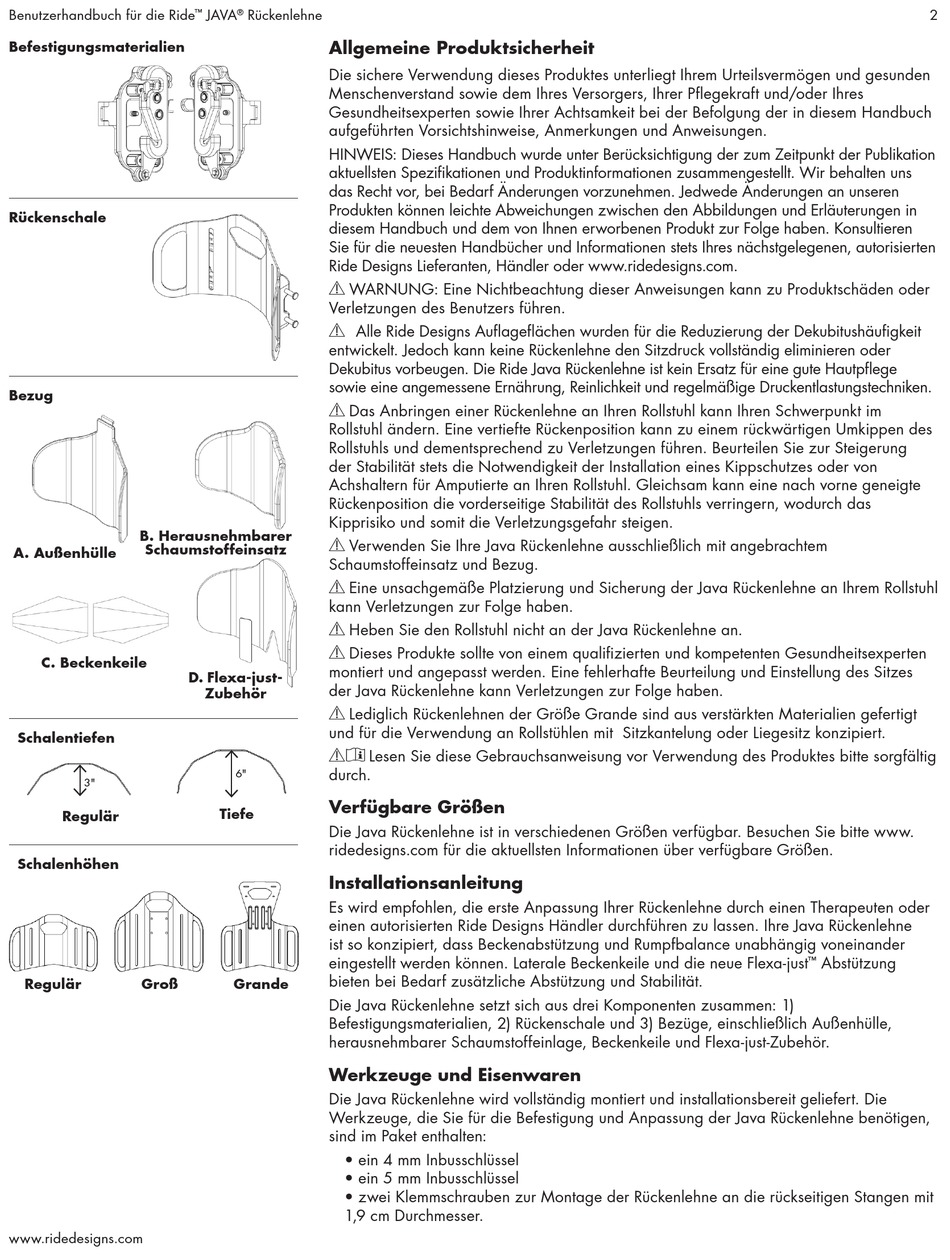 einen autorisierten Ride Designs Händler durchführen zu lassen. Ihre Java Rückenlehne