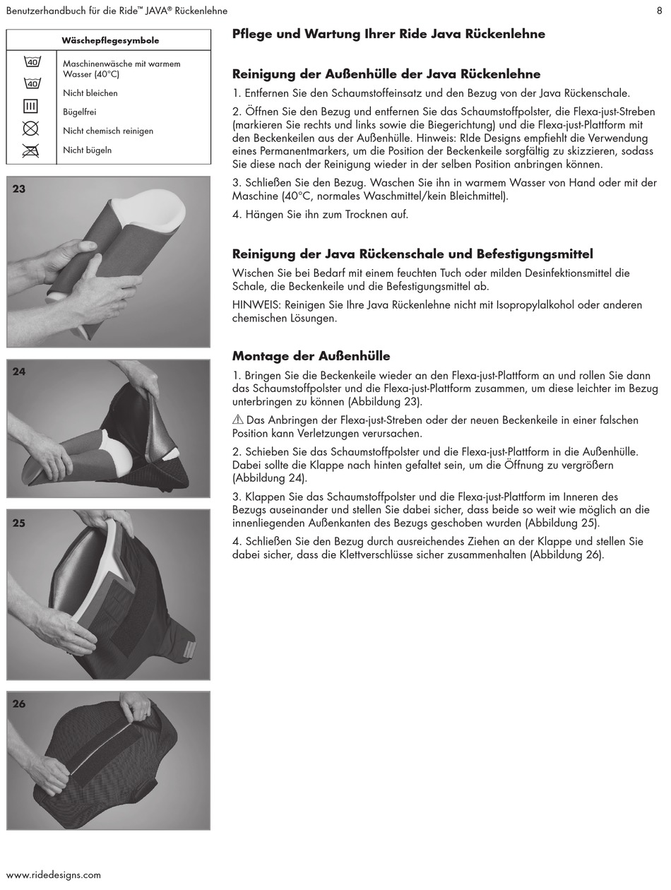 Pflege und Wartung Ihrer Ride Java Rückenlehne
