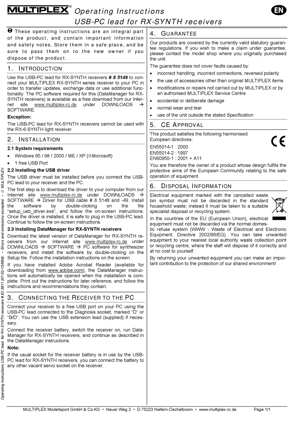 nect your MULTIPLEX RX-SYNTH series receiver to your PC in
