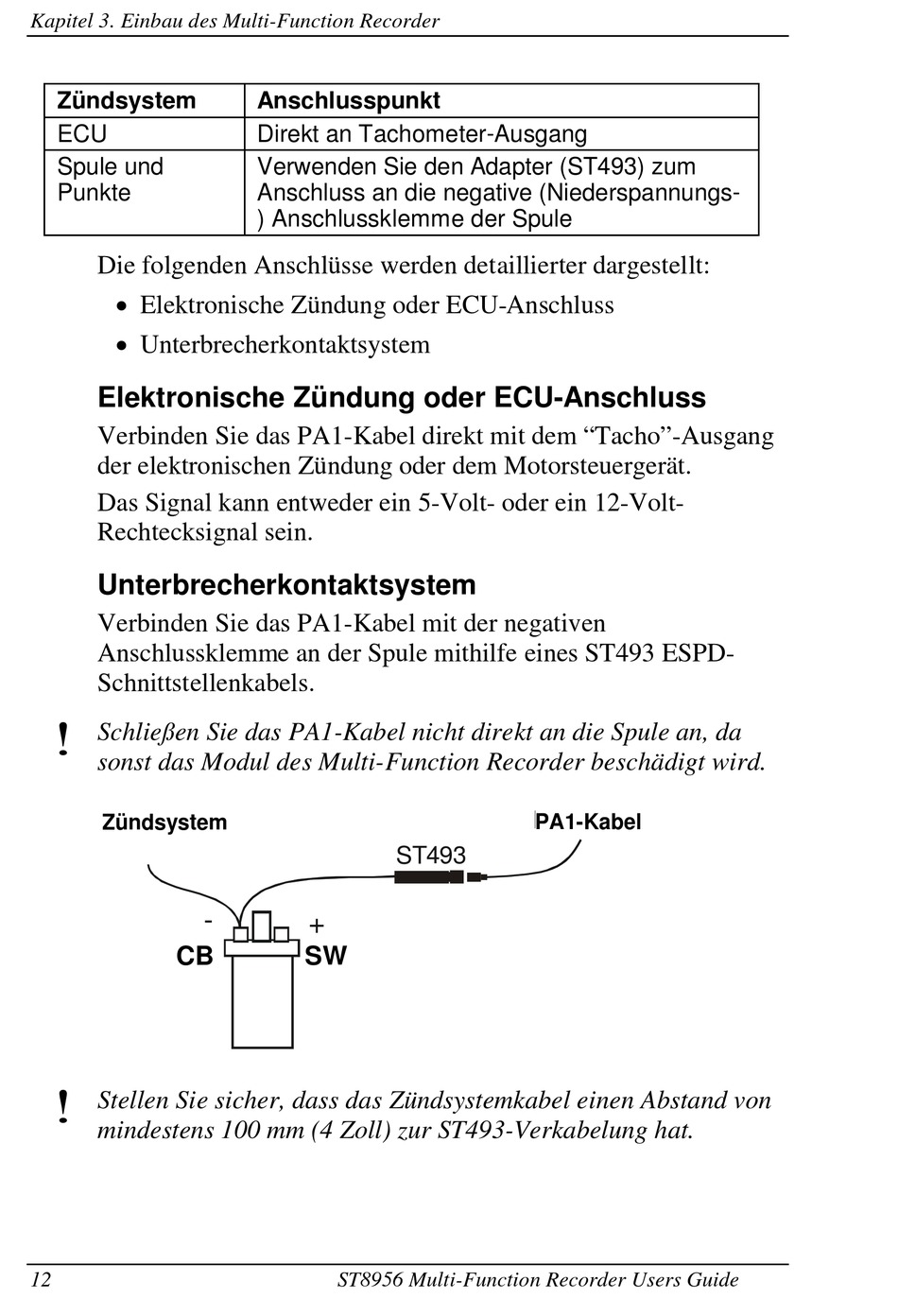mindestens 100 mm (4 Zoll) zur ST493-Verkabelung hat.