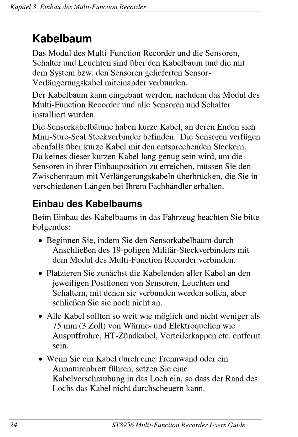 Beim Einbau des Kabelbaums in das Fahrzeug beachten Sie bitte