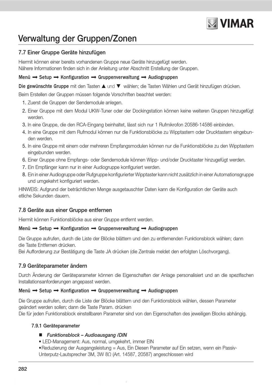 7. Ein Empfänger kann nur in einer Audiogruppe konfiguriert werden .