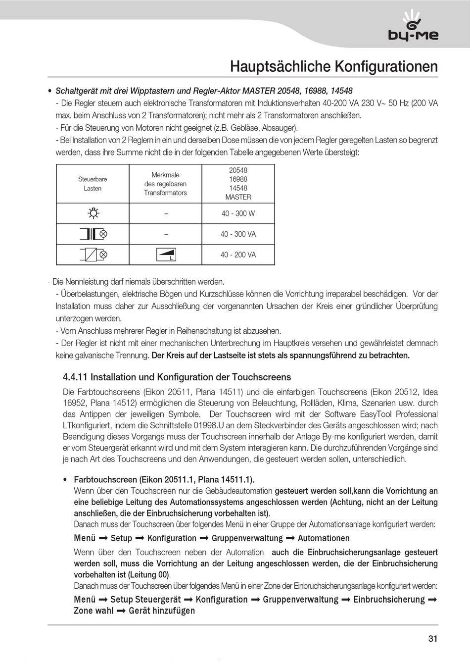 Beendigung dieses Vorgangs muss der Touchscreen innerhalb der Anlage By-me konfiguriert werden, damit
