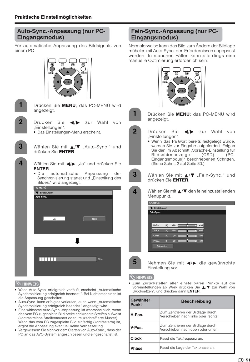 • Eine wirksame Auto-Sync.-Anpassung ist wahrscheinlich, wenn