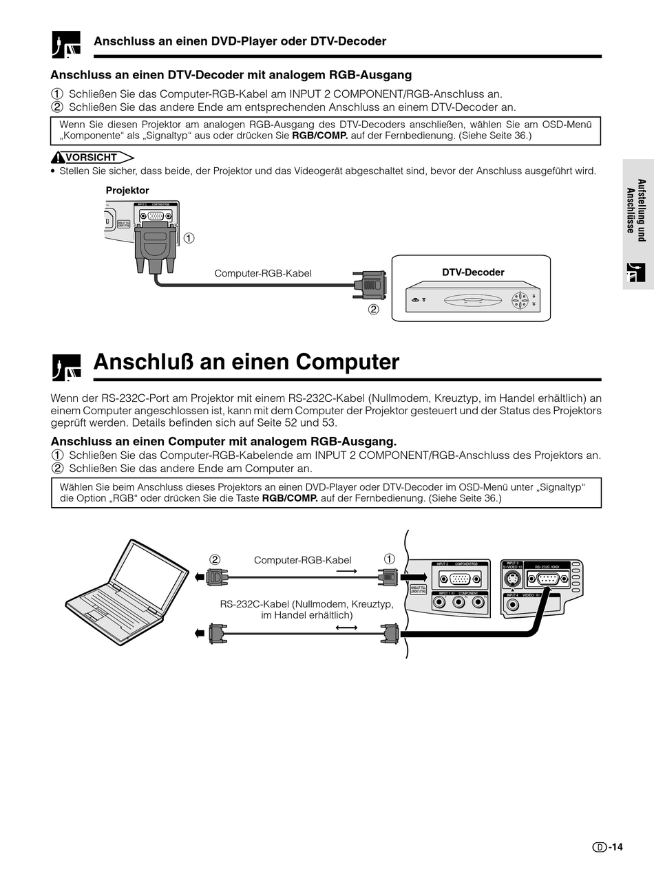Anschluss an einen Computer mit analogem RGB-Ausgang.