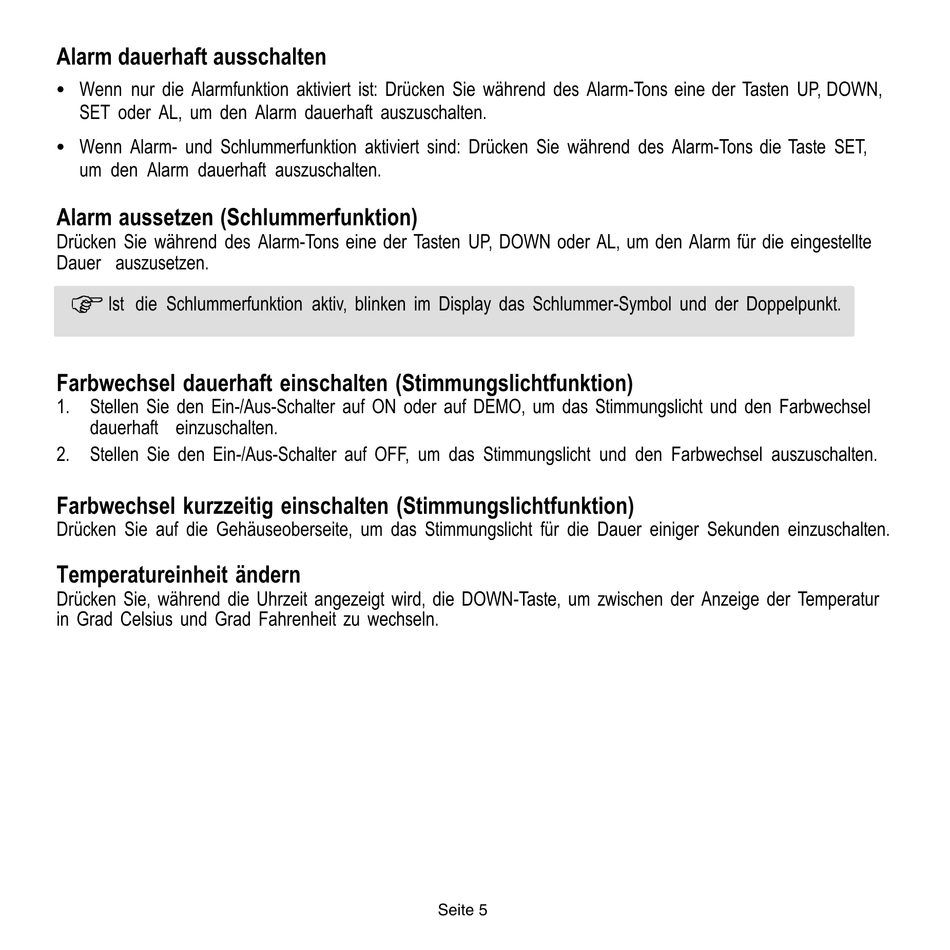 S Wenn Alarm− und Schlummerfunktion aktiviert sind: Drücken Sie während des Alarm−Tons die Taste SET,