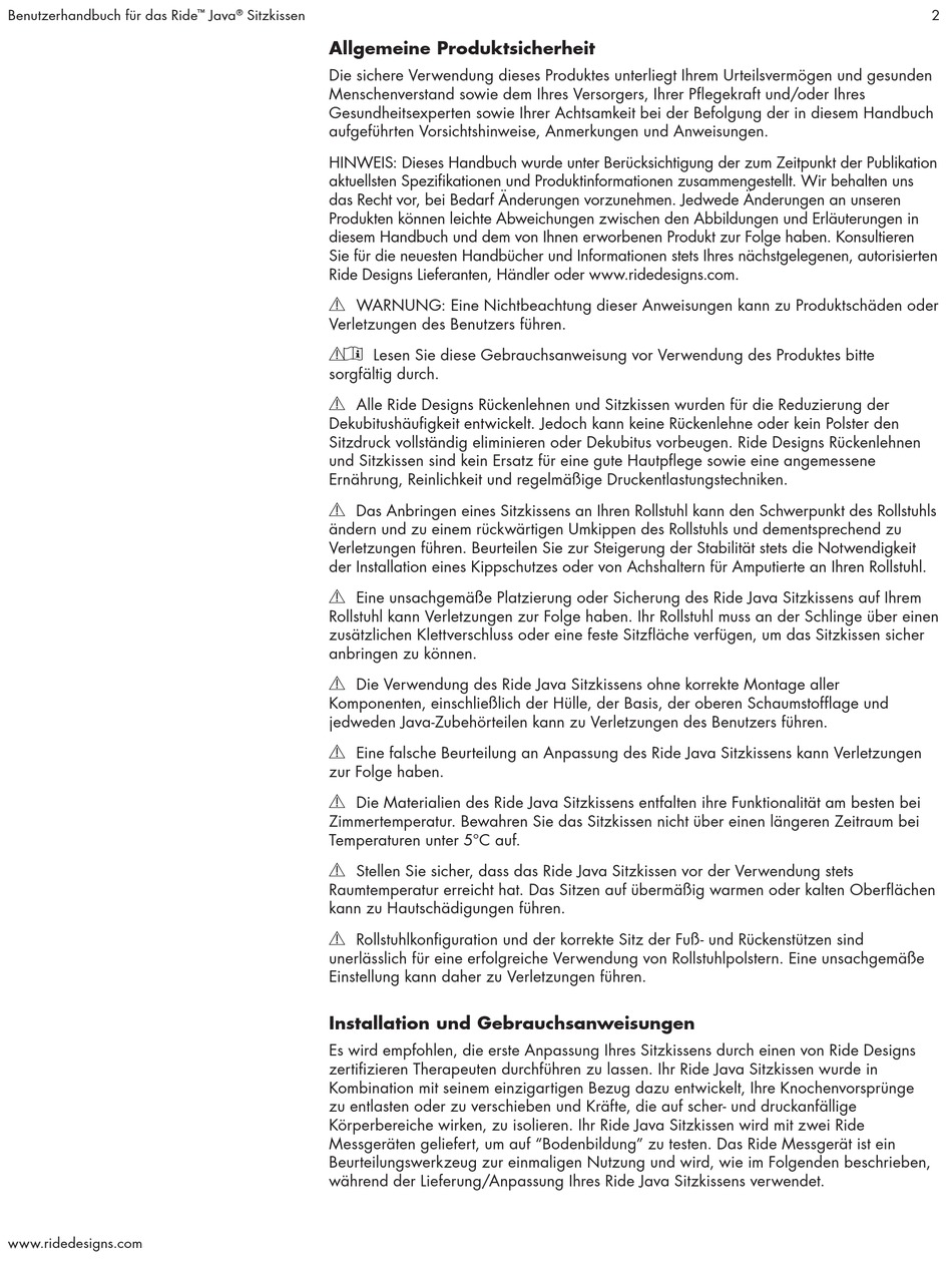Stellen Sie sicher, dass das Ride Java Sitzkissen vor der Verwendung stets