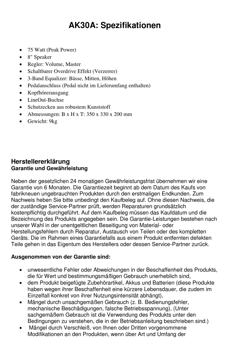 Garantie von 6 Monaten. Die Garantiezeit beginnt ab dem Datum des Kaufs von