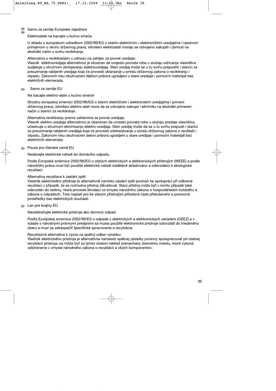 Shodno evropskoj smernici 2002/96/EG o starim električnim i elektronskim uredjajima i primeni