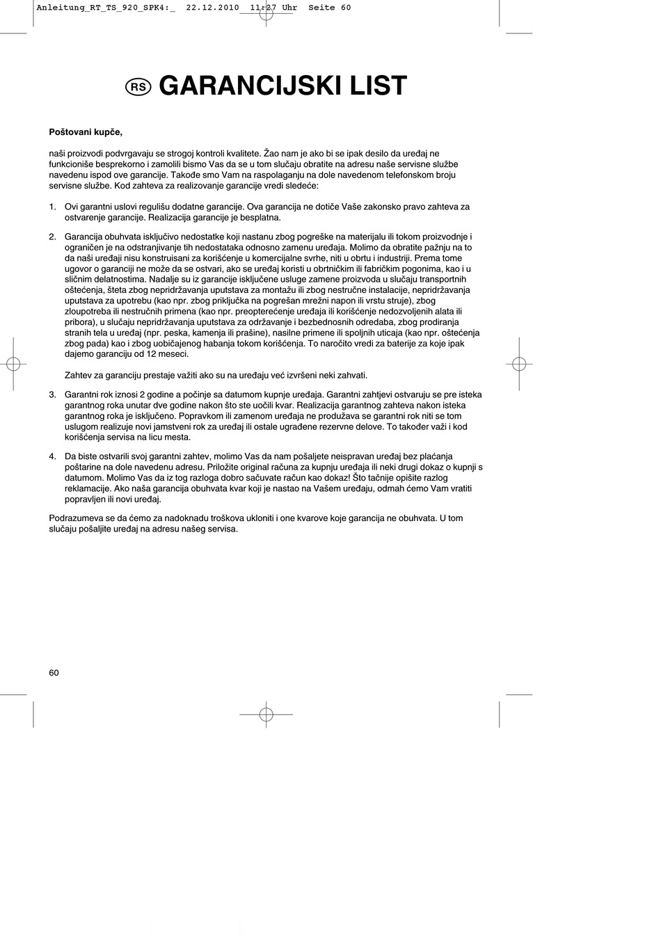 ograničen je na odstranjivanje tih nedostataka odnosno zamenu uređaja. Molimo da obratite pažnju na to