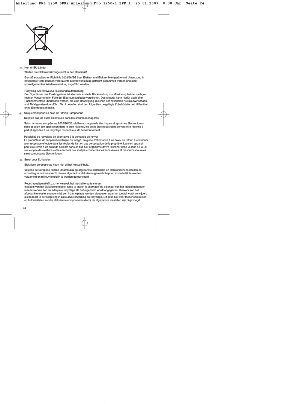 Selon la norme européenne 2002/96/CE relative aux appareils électriques et systèmes électroniques