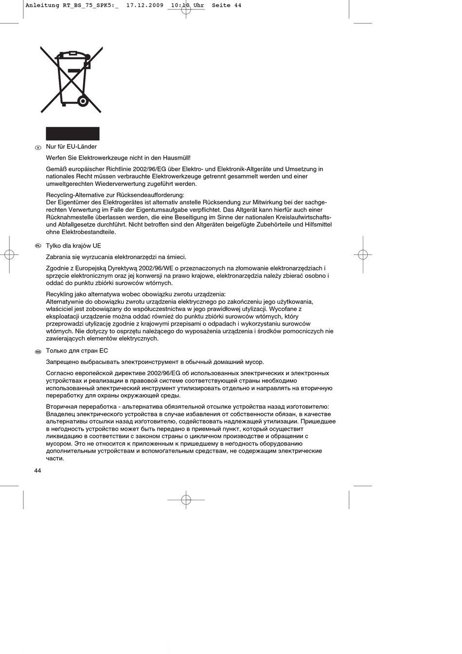 Согласно европейской директиве 2002/96/EG об использованных электрических и электронных