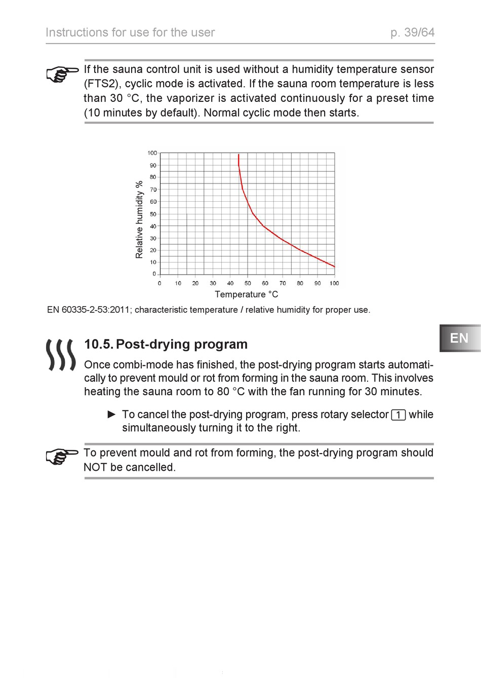 EN 60335-2-53:2011; characteristic temperature / relative humidity for proper use.