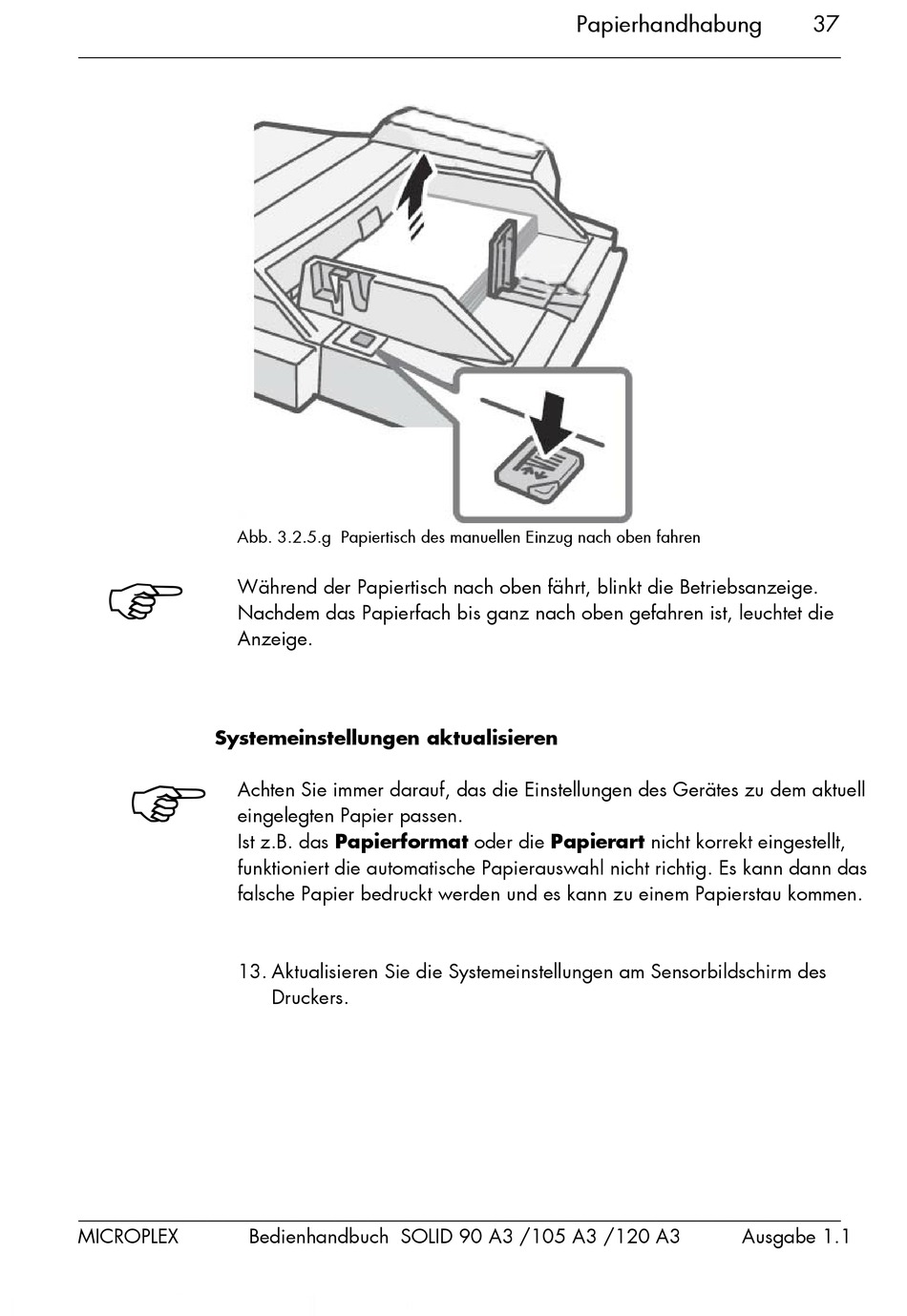 Abb. 3.2.5.g Papiertisch des manuellen Einzug nach oben fahren